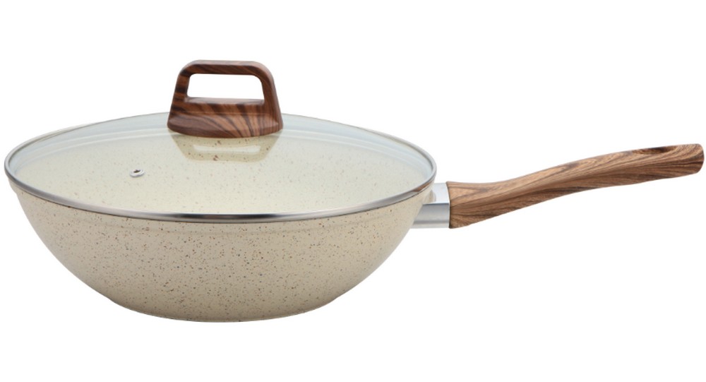 Tigaie adanca aluminiu forjat, acoperire granit, bej, 28cm