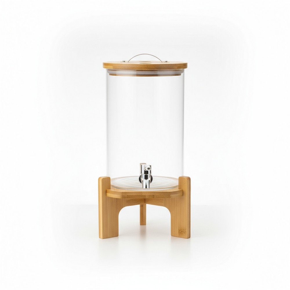 Borcan pentru limonada cu robinet pe suport din lemn, 5 L, din sticla