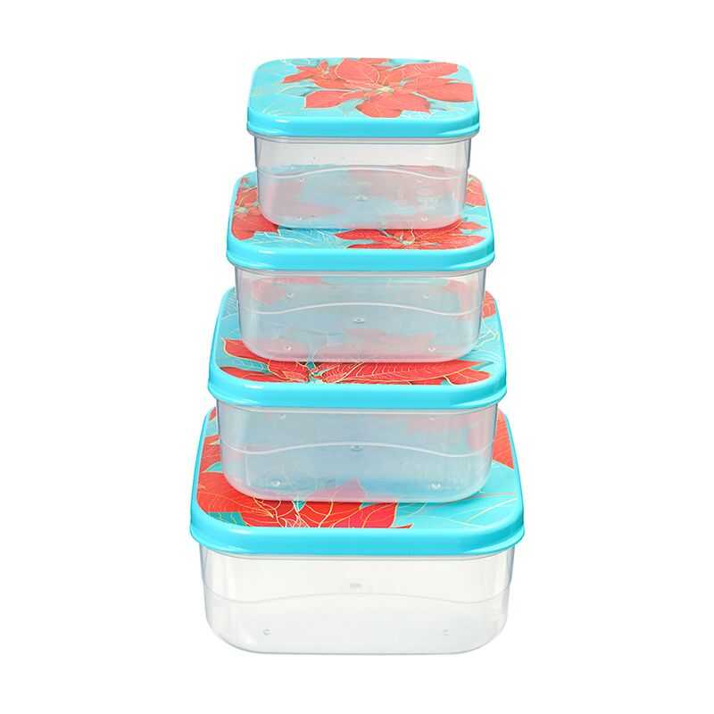 Set 4 containere, polipropilena, capac colora..