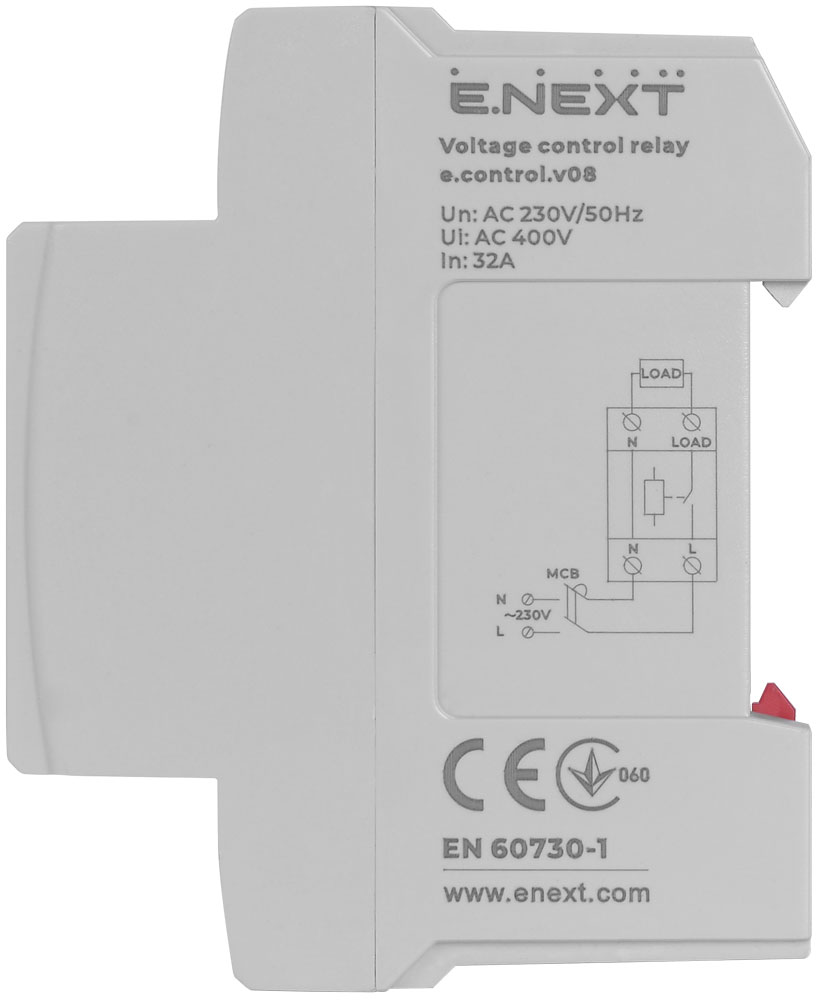 Реле контроля напряжения, однофазное, 32А, E-NEXT
