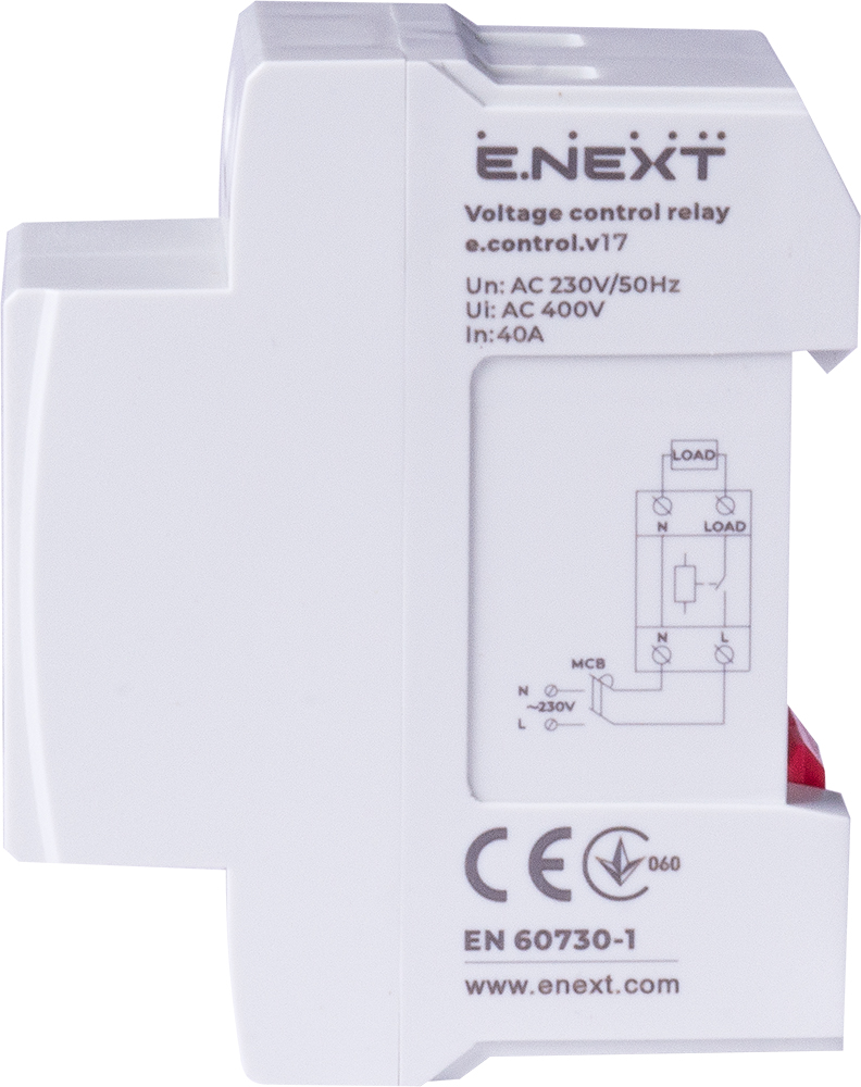 Реле контроля напряжения, однофазное, 40A, E-NEXT