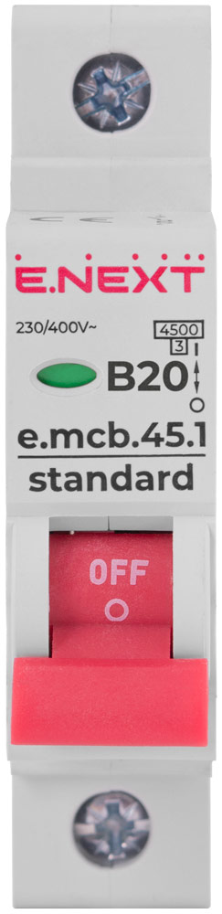 Автоматический выключатель 1P, B 20A, 4,5kA, STANDART, E-NEXT