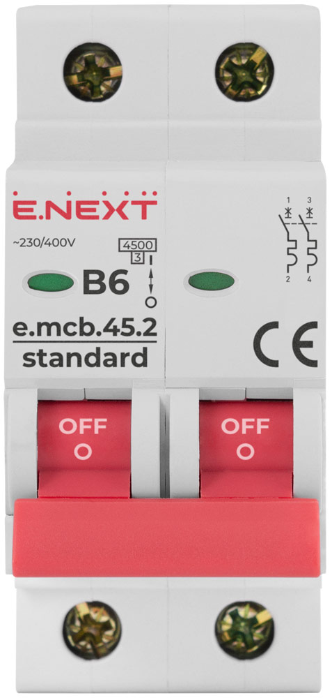 Автоматический выключатель 2P, B 6A, 4,5kA, STANDART, E-NEXT