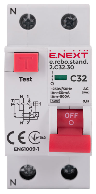 Дифференциальный автомат, тип C, 1P+N, 32A, 4,5kA, 30mA, STANDART, E-NEXT